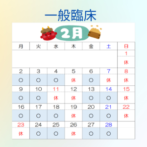 ※2月7日(土)は学院行事(オープンキャンパス)のため、休診とさせていただきます